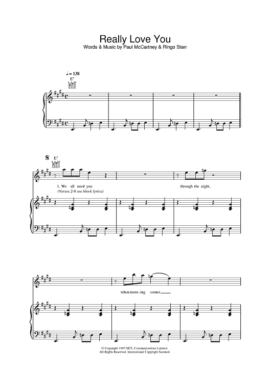 Digital Sheet Music for Really Love You by Paul McCartney, Ringo Starr scored for Piano/Vocal/Chords; id:389245