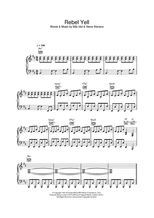 Digital Sheet Music for Rebel Yell by Billy Idol, Steve Stevens scored for Piano/Vocal/Chords; id:388356