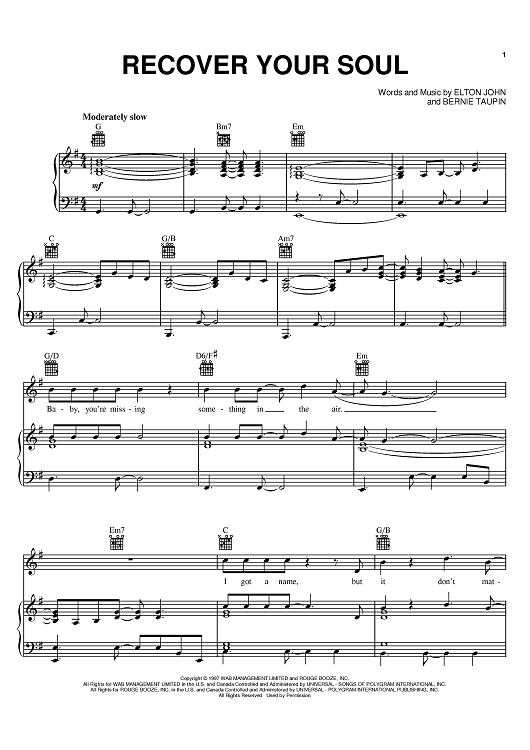 Digital Sheet Music for Recover Your Soul by Elton John, Bernie Taupin scored for Piano/Vocal/Chords; id:392555