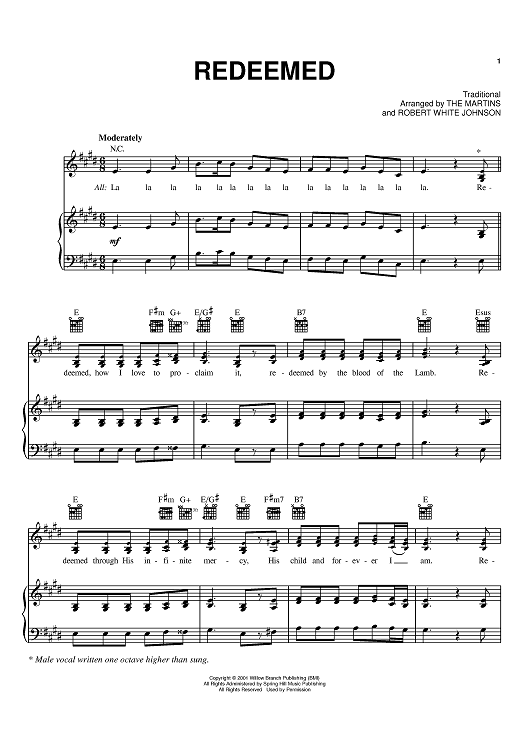 Digital Sheet Music for Redeemed by Robert White Johnson, Traditional, The Martins scored for Piano/Vocal/Chords; id:373777