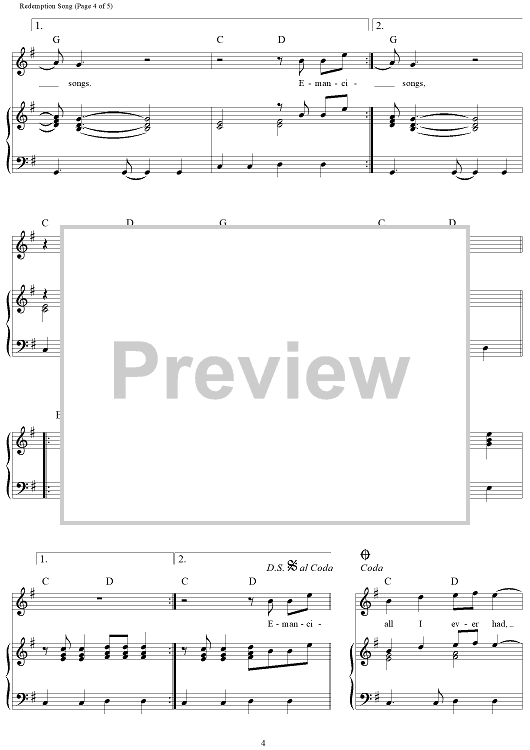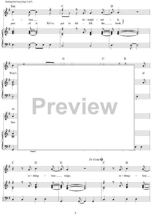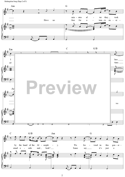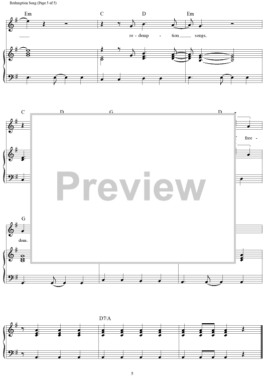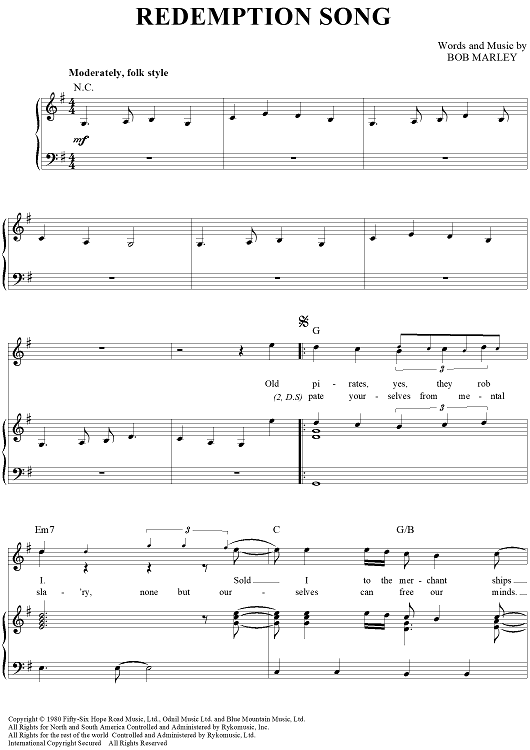 Digital Sheet Music for Redemption Song by Johnny Cash, Bob Marley scored for Piano/Vocal/Chords; id:370179