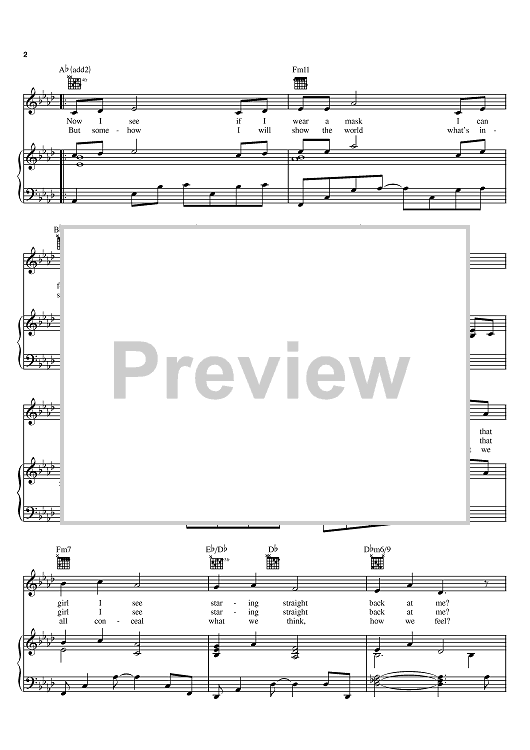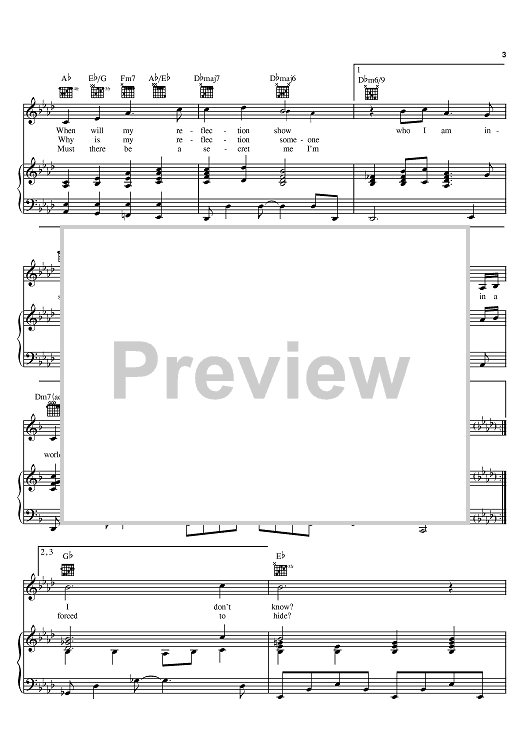 Digital Sheet Music for Reflection (Pop Version) by David Zippel, Matthew Wilder, Christina Aguilera scored for Piano/Vocal/Chords; id:368660