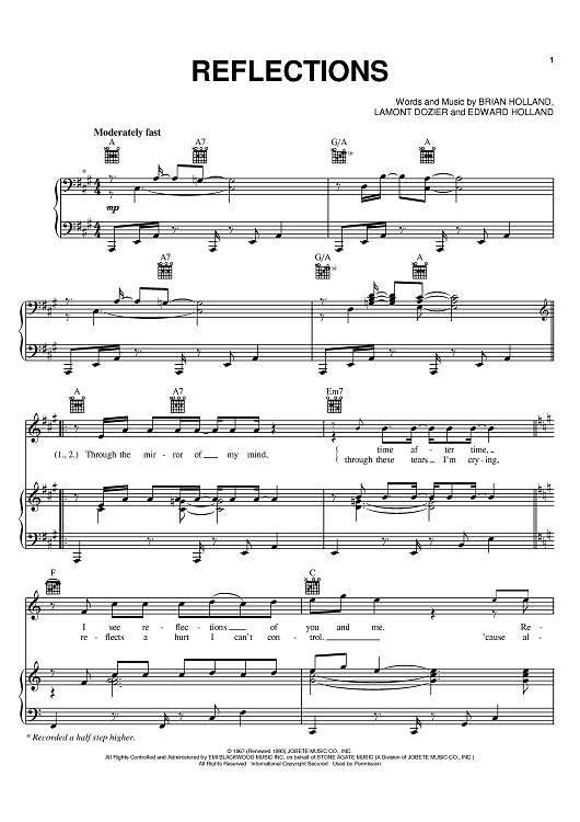 Digital Sheet Music for Reflections by Diana Ross, Michael McDonald, Lamont Dozier, Brian Holland, Eddie Holland, The Supremes scored for Piano/Vocal/Chords; id:394859