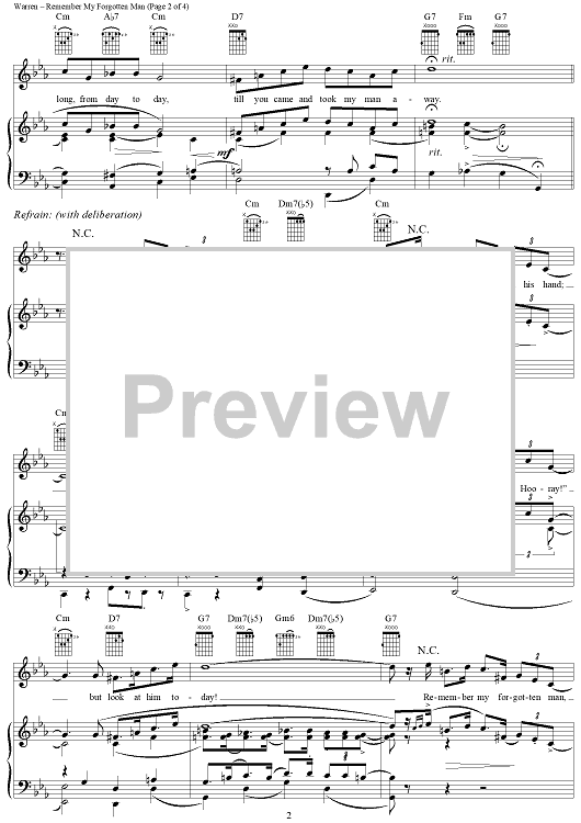 Digital Sheet Music for Remember My Forgotten Man by Harry Warren, Al Dubin scored for Piano/Vocal/Chords; id:264645