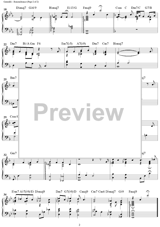 Digital Sheet Music for Remembrance (from the solo piano album LINUS & LUCY) by Vince Guaraldi, George Winston scored for Piano/Chords; id:465641