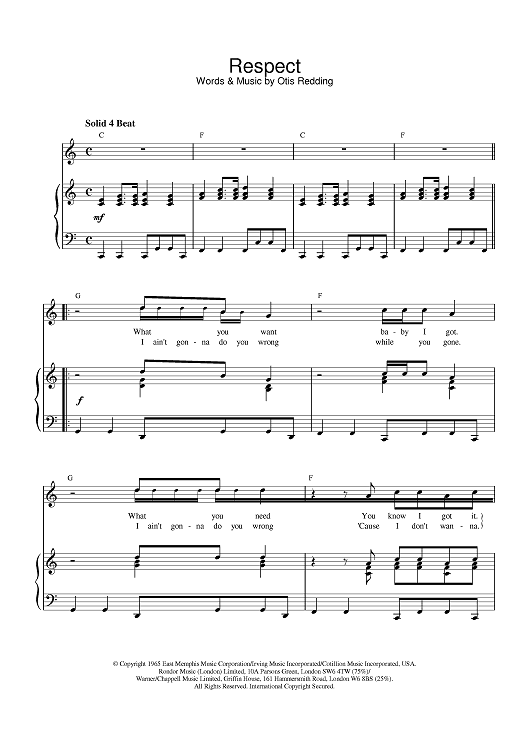 Digital Sheet Music for Respect by Otis Redding scored for Piano/Vocal/Chords; id:382384