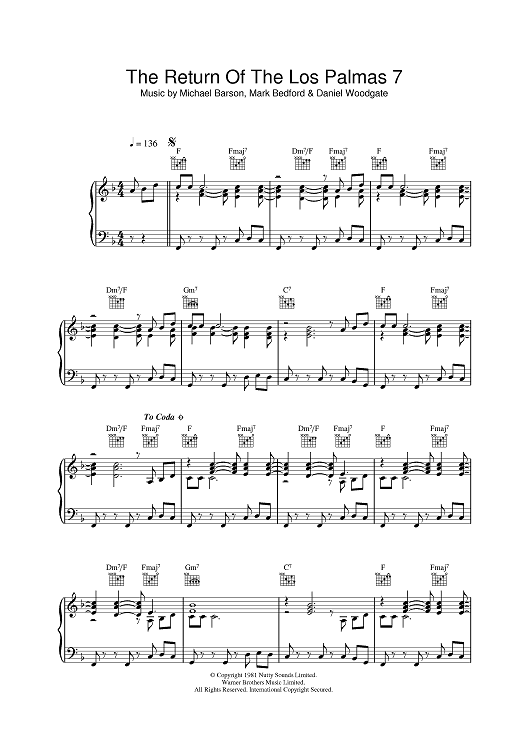Digital Sheet Music for Return Of The Los Palmas 7 by Mike Barson, Mark Bedford, Madness, Daniel Woodgate scored for Piano/Vocal/Chords; id:398831