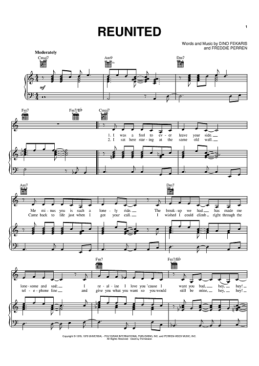 Digital Sheet Music for Reunited by Dino Fekaris, Freddie Perren, Peaches & Herb scored for Piano/Vocal/Chords; id:383799