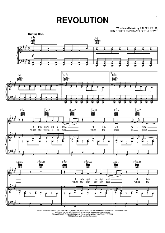 Digital Sheet Music for Revolution by Tim Neufeld, Jon Neufeld, Starfield, Matt Bronleewe scored for Piano/Vocal/Chords; id:381329