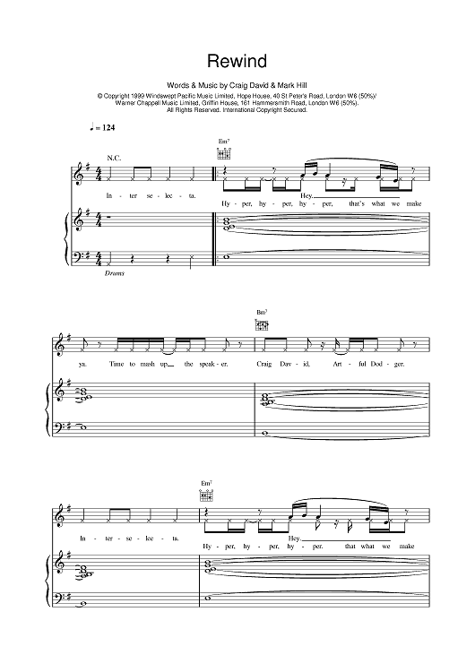 Digital Sheet Music for Rewind by Craig David, Mark Hill scored for Piano/Vocal/Chords; id:377168