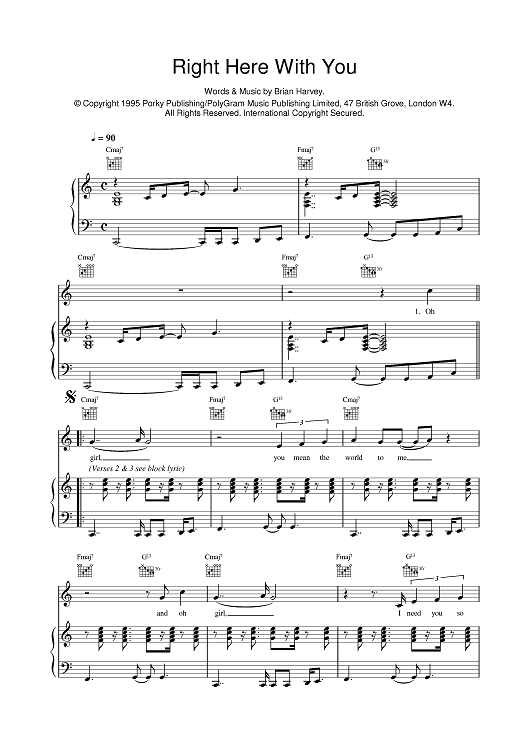 Digital Sheet Music for Right Here With You by East 17 scored for Piano/Vocal/Chords; id:376092