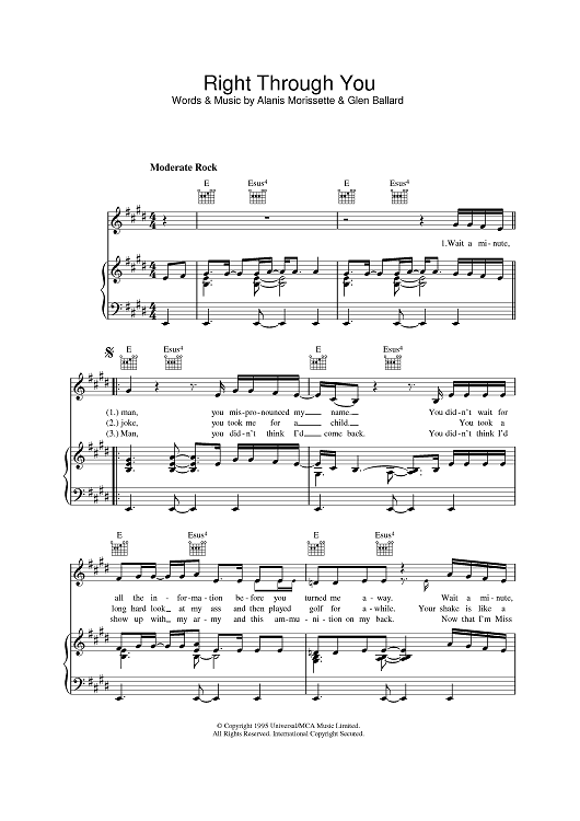 Digital Sheet Music for Right Through You by Glen Ballard, Alanis Morissette scored for Piano/Vocal/Chords; id:387703