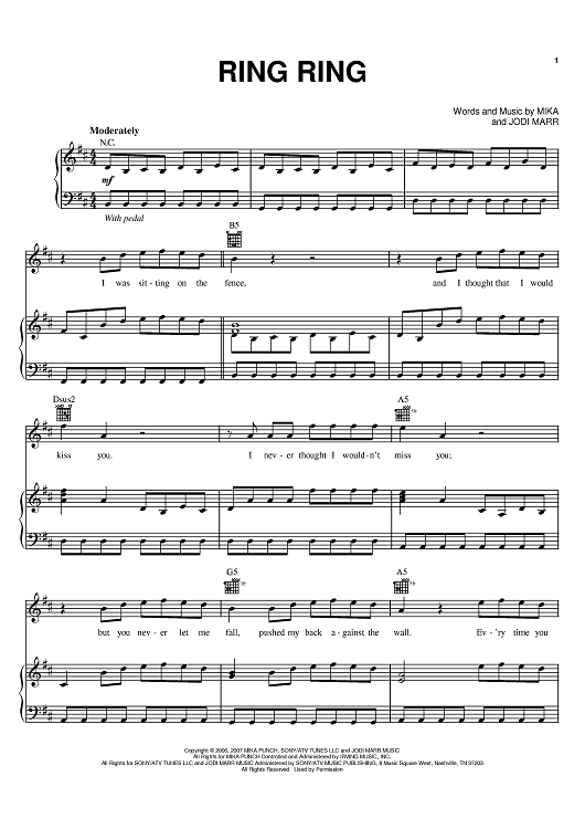 Digital Sheet Music for Ring Ring by Mika, Jodi Marr scored for Piano/Vocal/Chords; id:397651