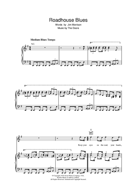 Digital Sheet Music for Roadhouse Blues by The Doors, Jim Morrison, Robbie Krieger, John Densmore, Ray Manzarek scored for Piano/Vocal/Chords; id:391041