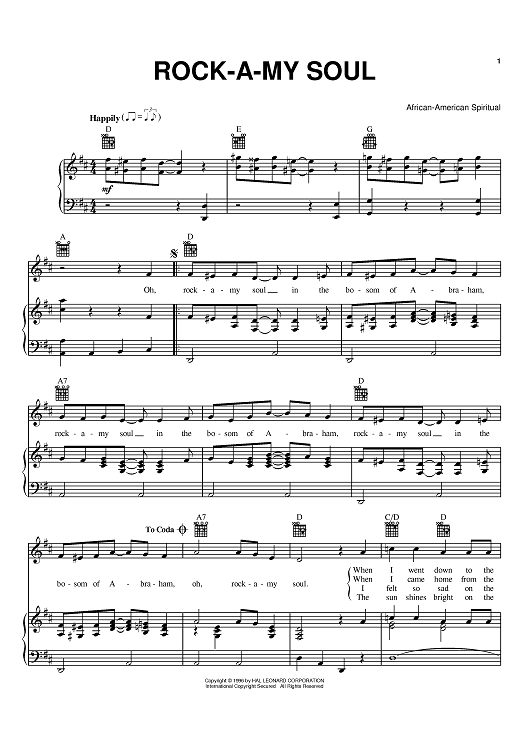 Digital Sheet Music for Rock-A-My Soul by scored for Piano/Vocal/Chords; id:368386
