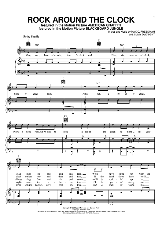 Digital Sheet Music for Rock Around The Clock by Max C. Freedman, Bill Haley & His Comets, Jimmy DeKnight scored for Piano/Vocal/Chords; id:395351