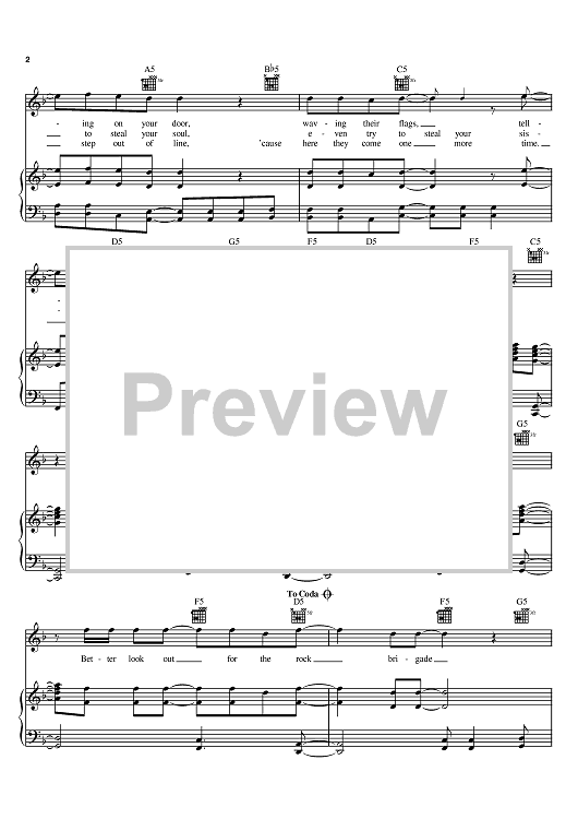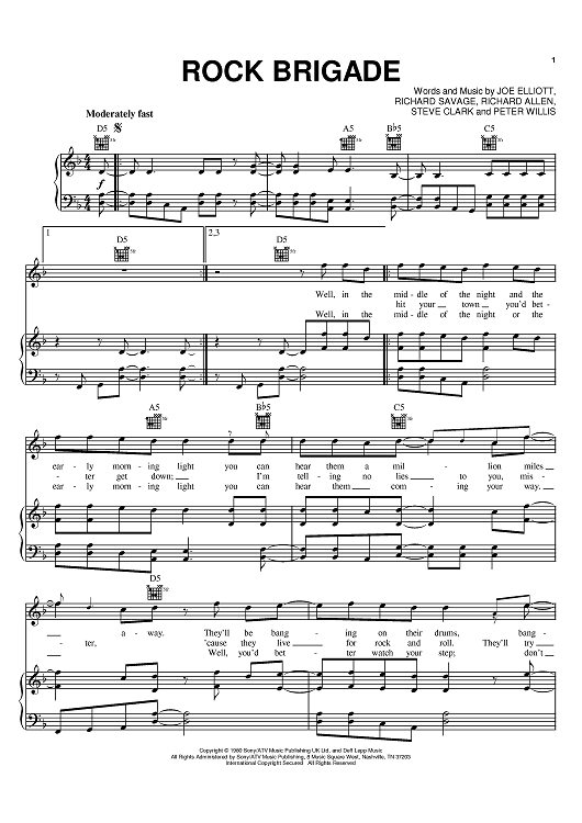 Digital Sheet Music for Rock Brigade by Steve Clark, Def Leppard, Joe Elliott, Richard Allen, Rick Savage, Pete Willis scored for Piano/Vocal/Chords; id:388982