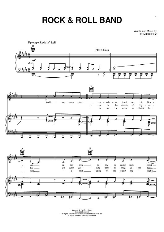 Digital Sheet Music for Rock & Roll Band by Boston, Tom Scholz scored for Piano/Vocal/Chords; id:402804