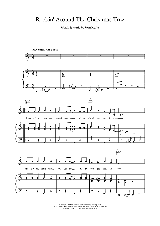 Digital Sheet Music for Rockin' Around The Christmas Tree by Brenda Lee scored for Piano/Vocal/Chords; id:376907