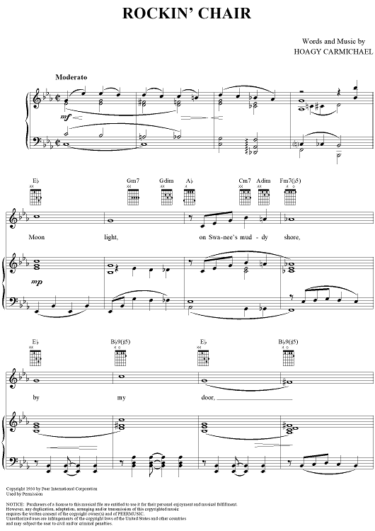 Digital Sheet Music for Rockin' Chair by Hoagy Carmichael, Jack Teagarden scored for Piano/Vocal/Chords; id:361800