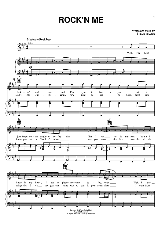 Digital Sheet Music for Rock'n Me by Steve Miller, Steve Miller Band scored for Piano/Vocal/Chords; id:386221