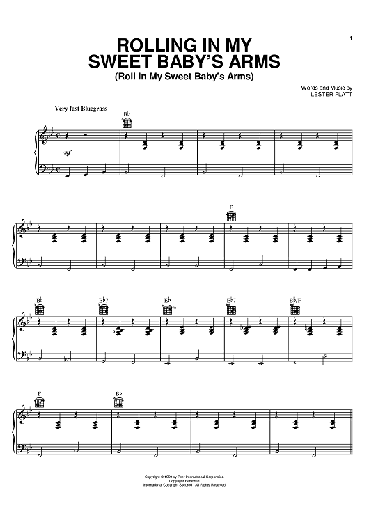 Digital Sheet Music for Rollin' In My Sweet Baby's Arms by Lester Flatt scored for Piano/Vocal/Chords; id:381732