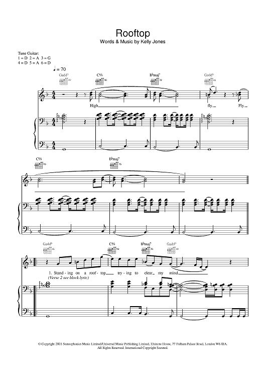 Digital Sheet Music for Rooftop by Kelly Jones, Stereophonics scored for Piano/Vocal/Chords; id:380063