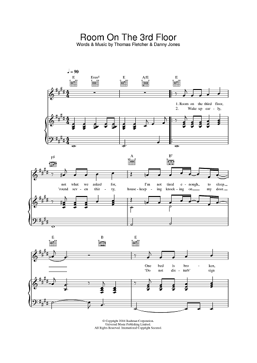 Digital Sheet Music for Room On The 3rd Floor by Tom Fletcher, McFly, Danny Jones scored for Piano/Vocal/Chords; id:381293