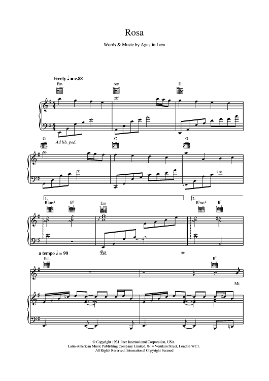 Digital Sheet Music for Rosa by Placido Domingo scored for Piano/Vocal/Chords; id:376816