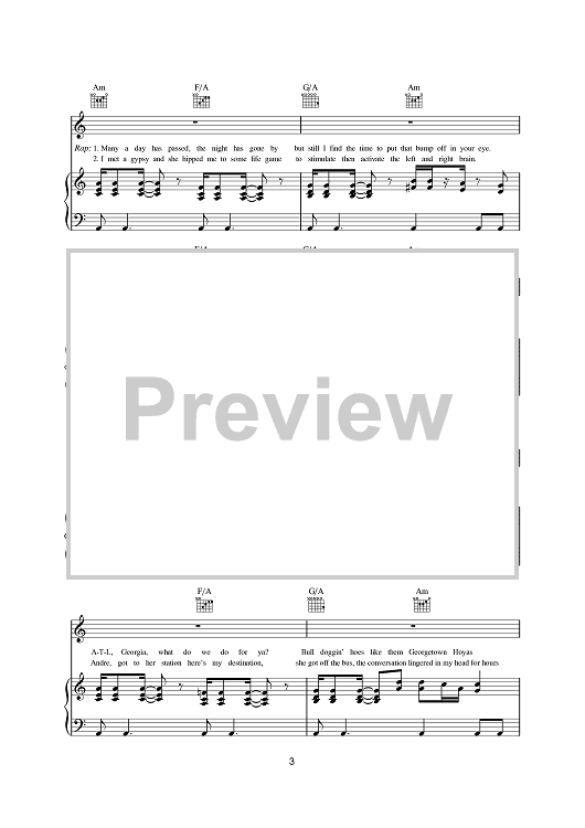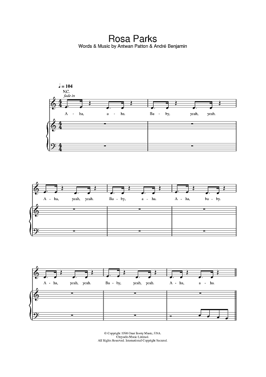 Digital Sheet Music for Rosa Parks by OutKast scored for Piano/Vocal/Chords; id:378489