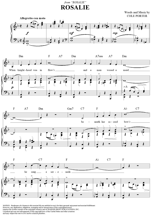 Digital Sheet Music for Rosalie by Cole Porter scored for Piano/Vocal/Chords; id:314739