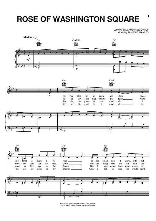 Digital Sheet Music for Rose Of Washington Square by James F. Hanley, Benny Goodman, Ballard MacDonald, Pee Wee Russell scored for Piano/Vocal/Chords; id:384454
