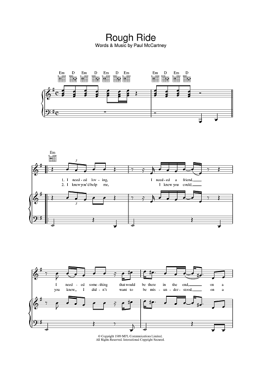 Digital Sheet Music for Rough Ride by Paul McCartney scored for Piano/Vocal/Chords; id:389157