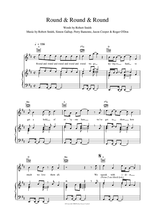 Digital Sheet Music for Round & Round & Round by The Cure scored for Piano/Vocal/Chords; id:376466