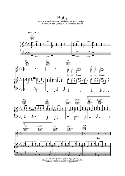 Digital Sheet Music for Ruby by Nick Baines, Nick Hodgson, Kaiser Chiefs, Simon Rix, Andrew White, Charlie Wilson scored for Piano/Vocal/Chords; id:397037