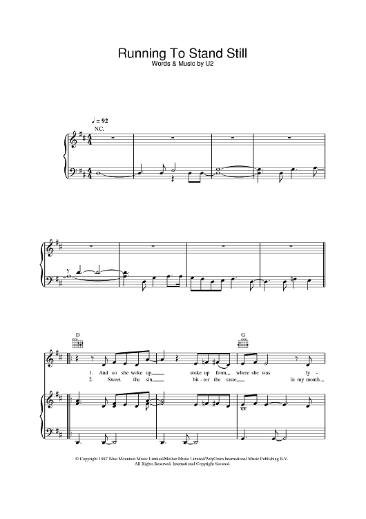 Digital Sheet Music for Running To Stand Still by U2 scored for Piano/Vocal/Chords; id:385121