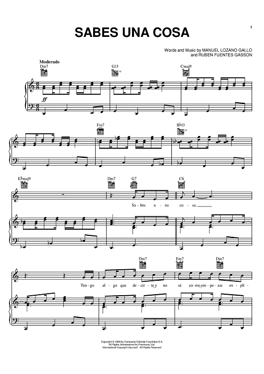 Digital Sheet Music for Sabes Una Cosa by Luis Miguel, Manuel Lozano Gallo, Ruben Fuentes Gasson scored for Piano/Vocal/Chords; id:386561