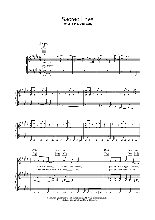 Digital Sheet Music for Sacred Love by Sting scored for Piano/Vocal/Chords; id:378189