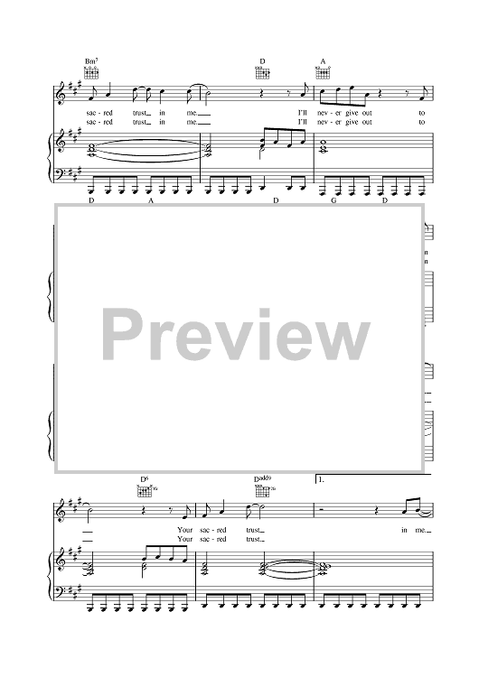 Digital Sheet Music for Sacred Trust by One True Voice scored for Piano/Vocal/Chords; id:377882