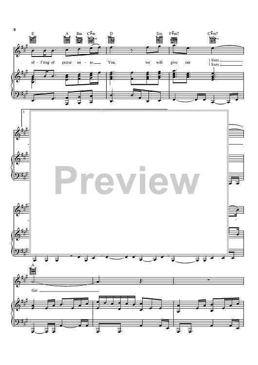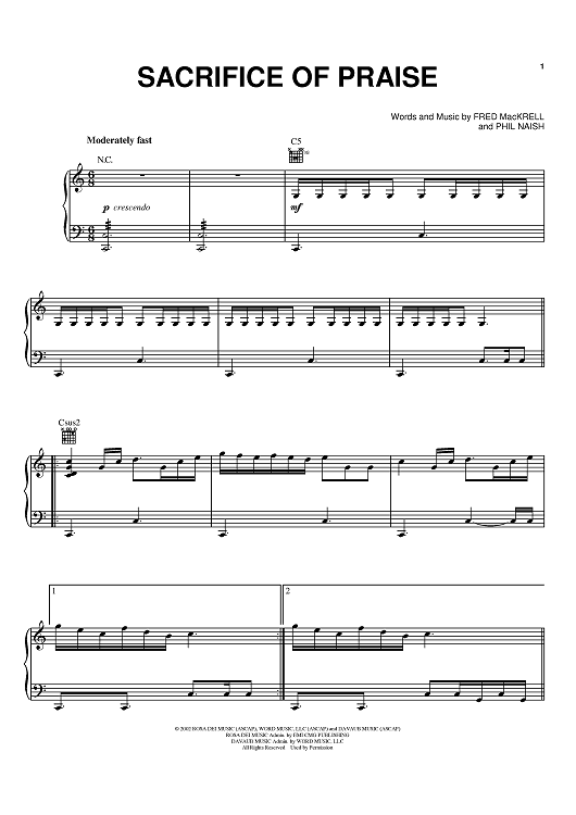 Digital Sheet Music for Sacrifice Of Praise by Steve Green, Phil Naish, Fred MacKrell scored for Piano/Vocal/Chords; id:369082