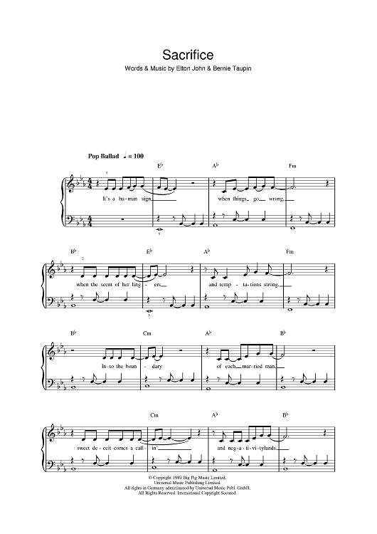 Digital Sheet Music for Sacrifice by Elton John, Bernie Taupin scored for Piano/Vocal/Chords; id:394229