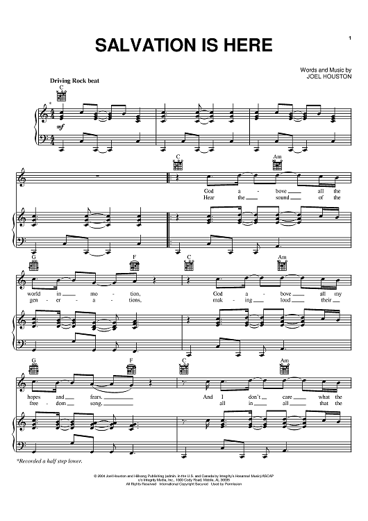 Digital Sheet Music for Salvation Is Here by Joel Houston, Lincoln Brewster scored for Piano/Vocal/Chords; id:401705