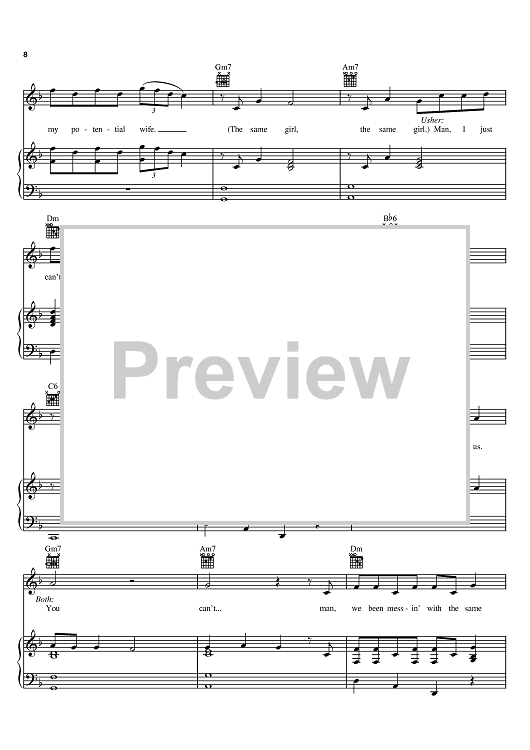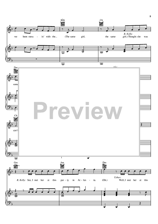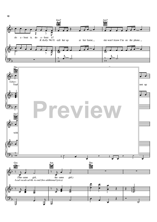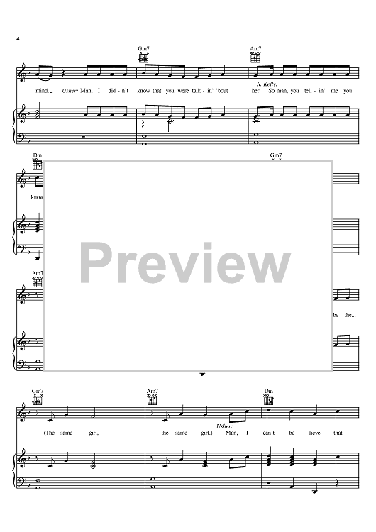Digital Sheet Music for Same Girl by Usher, R. Kelly, Ronnie Jackson, James "Rayshawn" Smith scored for Piano/Vocal/Chords; id:401148