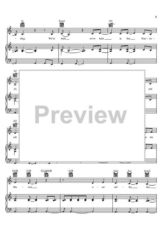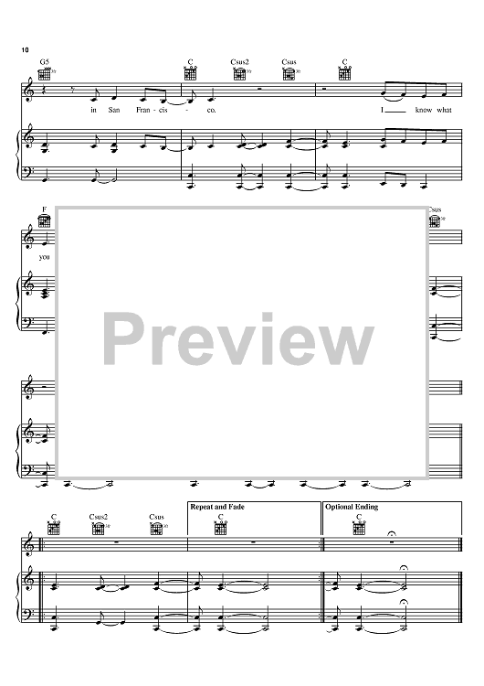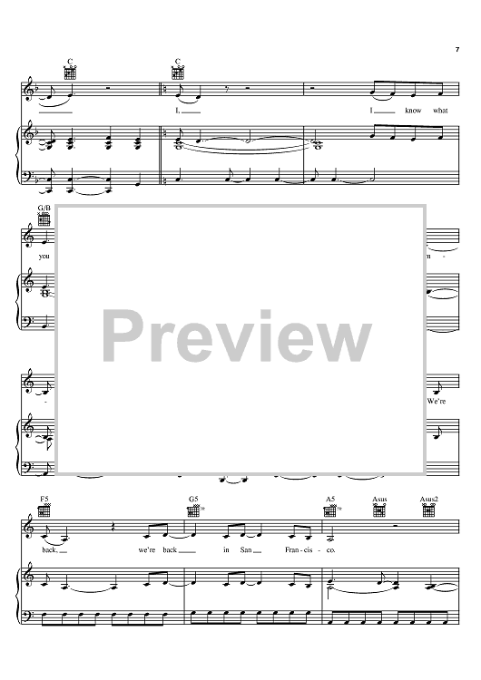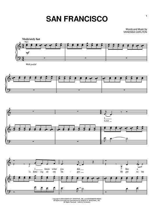 Digital Sheet Music for San Francisco by Vanessa Carlton scored for Piano/Vocal/Chords; id:384430