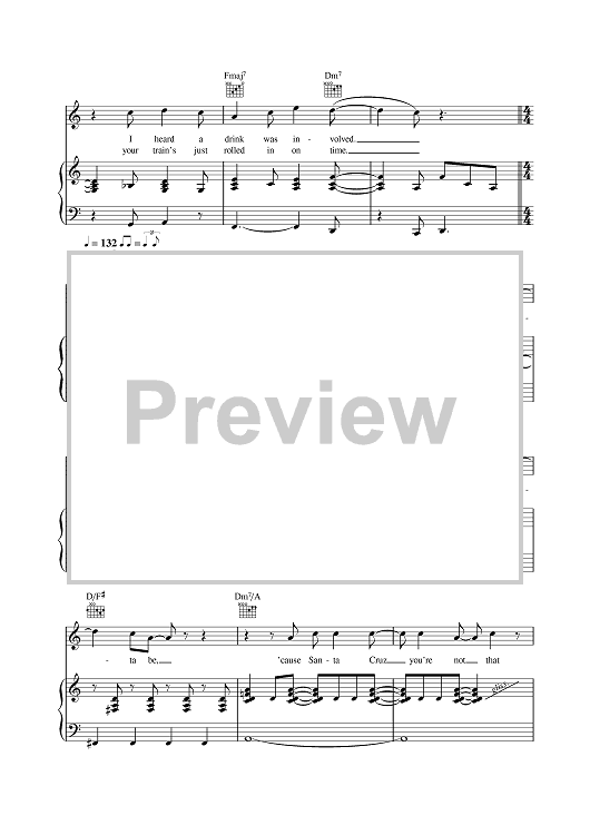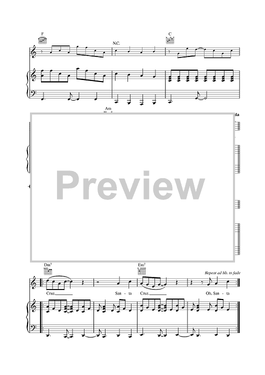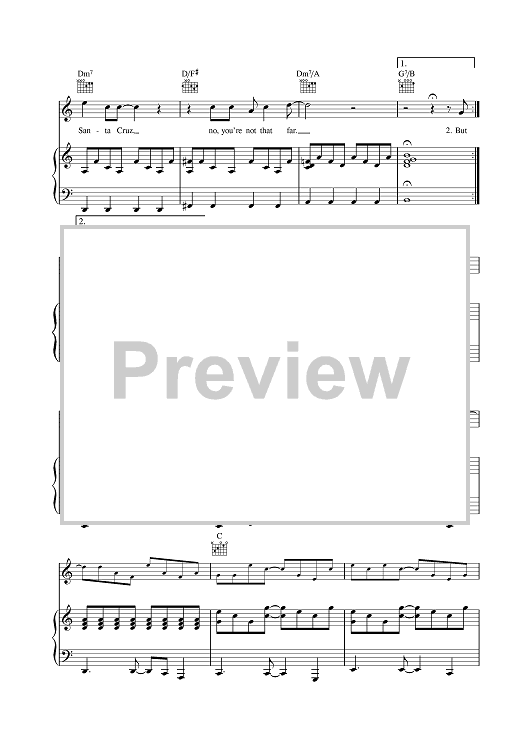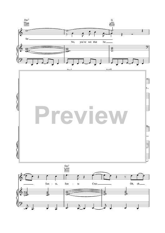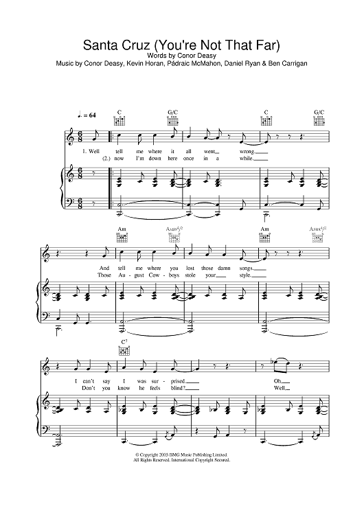 Digital Sheet Music for Santa Cruz (You're Not That Far) by The Thrills scored for Piano/Vocal/Chords; id:378120