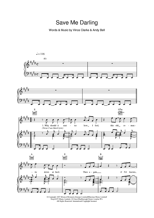 Digital Sheet Music for Save Me Darling by Erasure scored for Piano/Vocal/Chords; id:376387