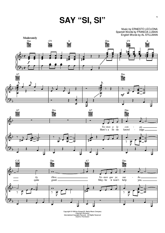 Digital Sheet Music for Say "Si, Si" by Chet Atkins, Al Stillman, Ernesto Lecuona, Francia Luban scored for Piano/Vocal/Chords; id:382155