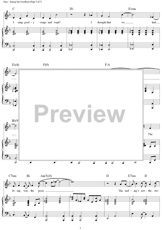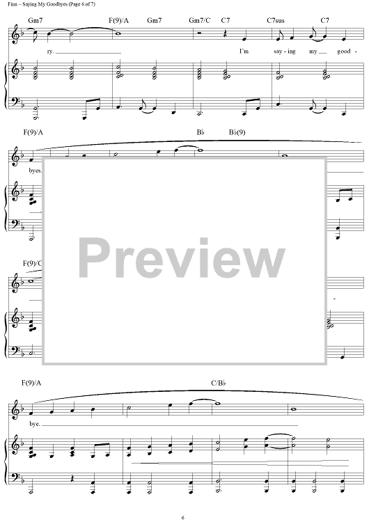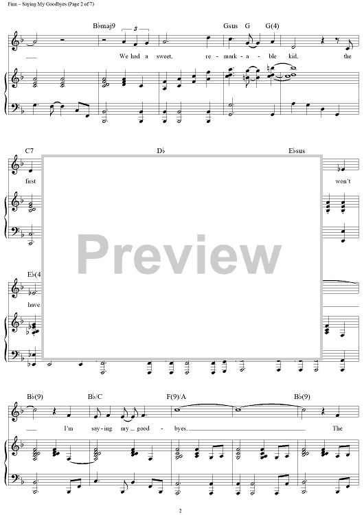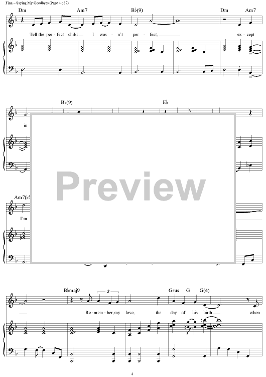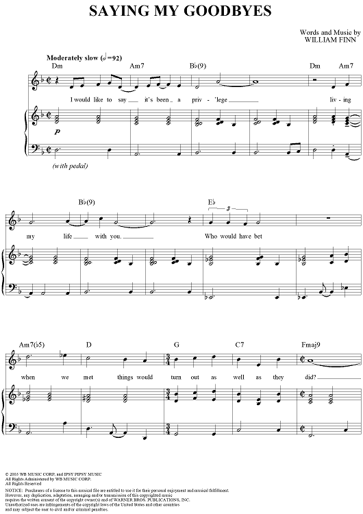 Digital Sheet Music for Saying My Goodbyes by William Finn scored for Piano/Vocal/Chords; id:360042