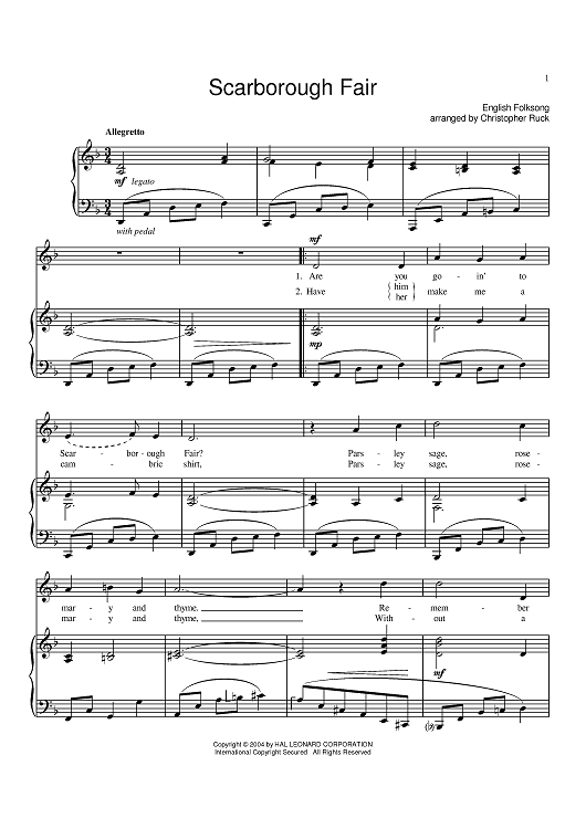 Digital Sheet Music for Scarborough Fair by scored for Piano/Vocal/Chords; id:374521