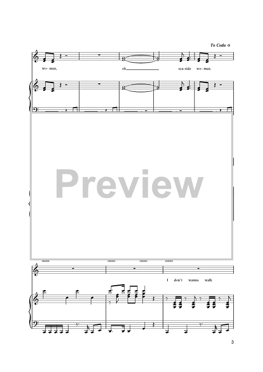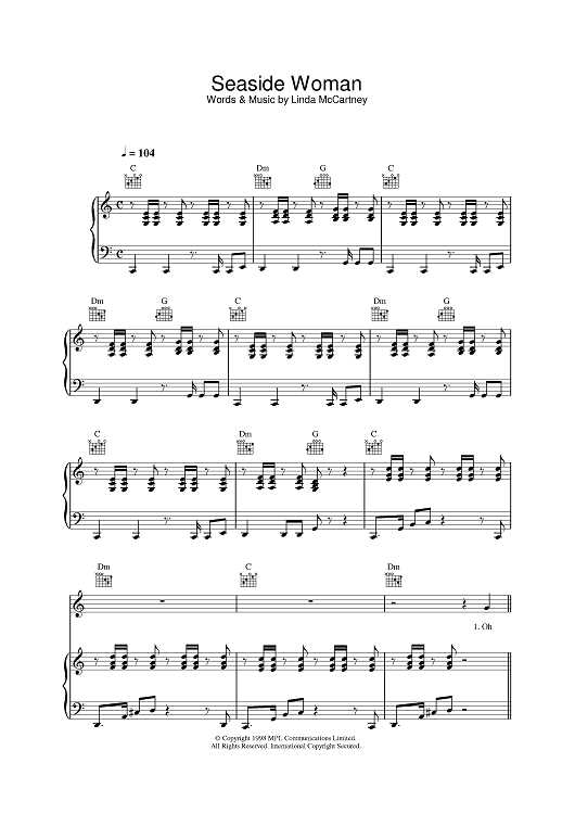 Digital Sheet Music for Seaside Woman by Linda McCartney scored for Piano/Vocal/Chords; id:389338